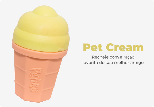 Pet Cream é um brinquedo que pode ser recheado com ração para estimular seu pet a se alimentar enquanto se diverte.