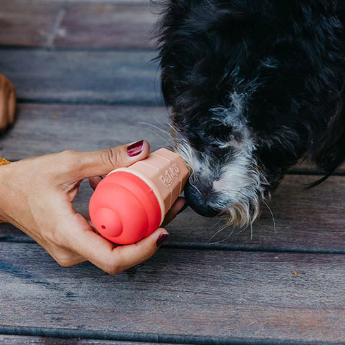 Pet Cream é um brinquedo que pode ser recheado com ração para estimular seu pet a se alimentar enquanto se diverte.