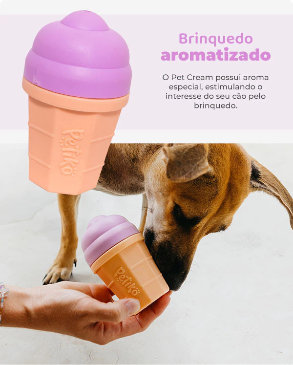 Pet Cream é um brinquedo que pode ser recheado com ração para estimular seu pet a se alimentar enquanto se diverte.