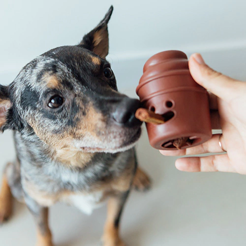 - Brinquedo 2 em 1: mordedor e porta petiscos;