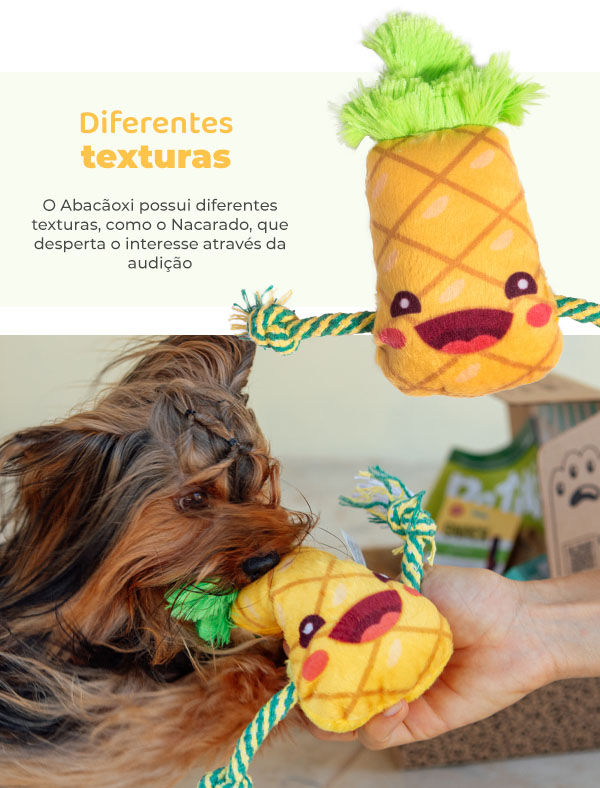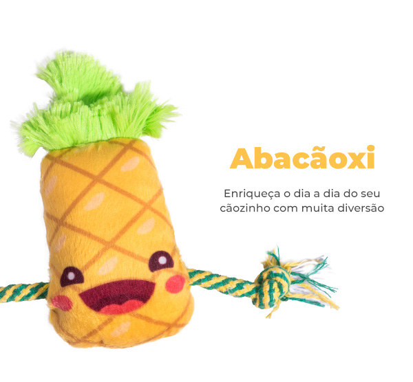 O Abacãoxi é um brinquedo de pelúcia que vai tornar as brincadeiras do seu cachorro ainda mais divertidas.