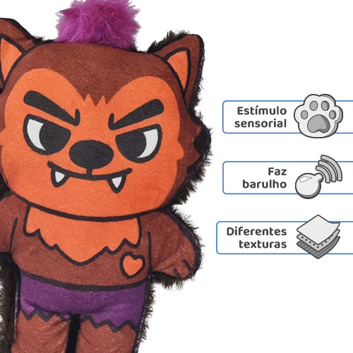 Jacob, o Lobisomem, chegou direto das noites de lua cheia para virar o novo melhor amigo do seu cão! Essa pelúcia temática com apito interno estimula os sentidos, desperta a curiosidade e garante horas de diversão e bem-estar.