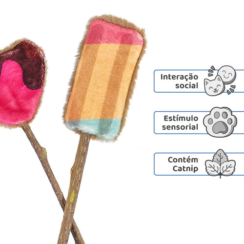- Com Catnip, erva medicinal e aromática que incentiva a brincadeira e deixa os gatinhos felizes e relaxados.
