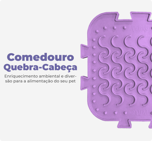 O tapete lambedor Quebra-Cabeça transforma a alimentação em um momento mais calmo, estimulante e envolvente para o seu pet.