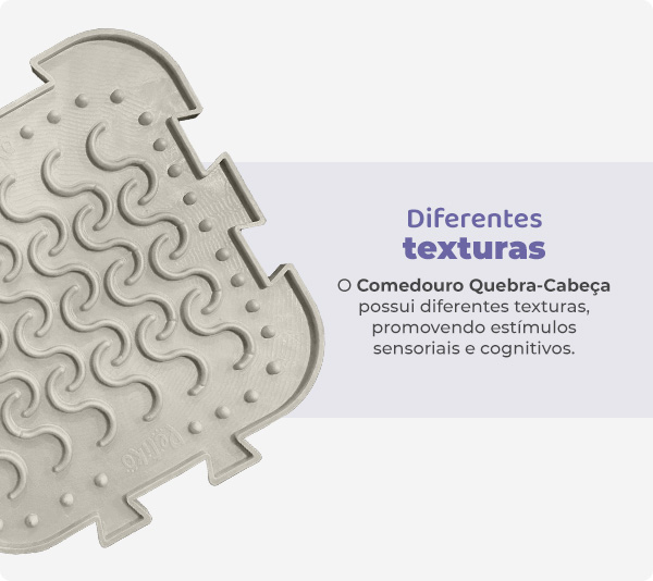 As diferentes texturas estimulam os sentidos e incentivam o comportamento natural de lamber, o que pode contribuir para reduzir a ansiedade e tornar o momento da alimentação mais tranquilo. Esse tipo de estímulo também ajuda a desacelerar o consumo de alimentos, especialmente em pets mais agitados.