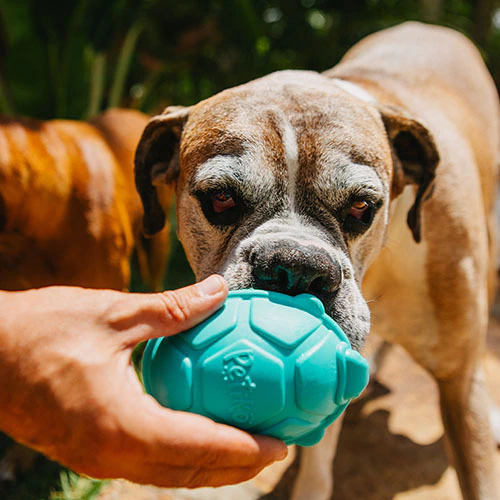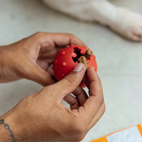 - Brinquedos 2 em 1: mordedor e porta petiscos;