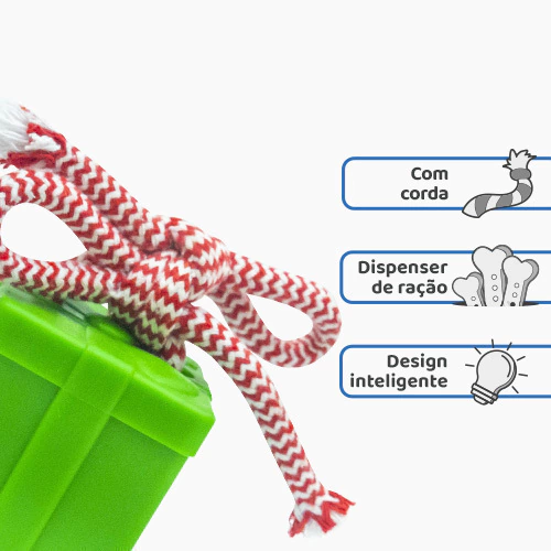 - Brinquedo 2 em 1: mordedor superdivertido e dispenser de alimentos;