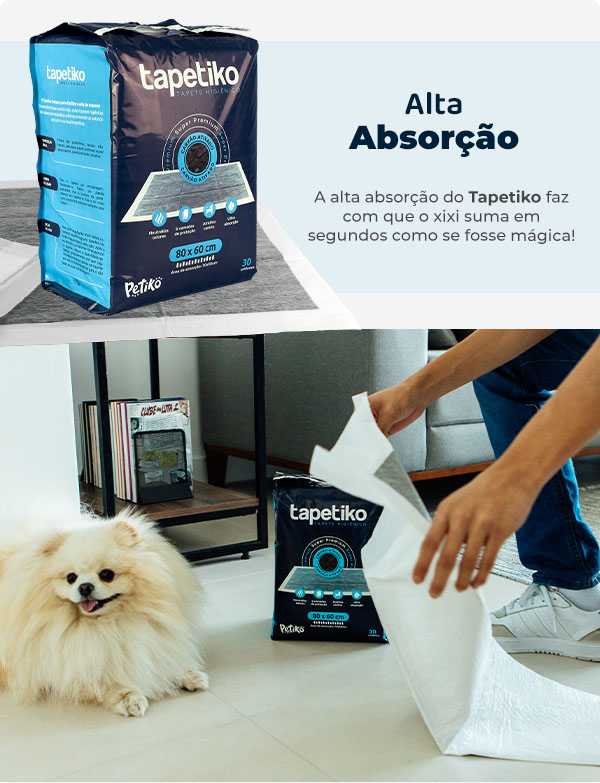 O Tapete Higiênico Tapetiko é uma solução prática para a higiene do seu cão, ajudando a manter o ambiente limpo e mais organizado no dia a dia. Desenvolvido com tecnologia de alta absorção, ele retém líquidos de forma eficiente, contribuindo para uma superfície mais seca após o uso.